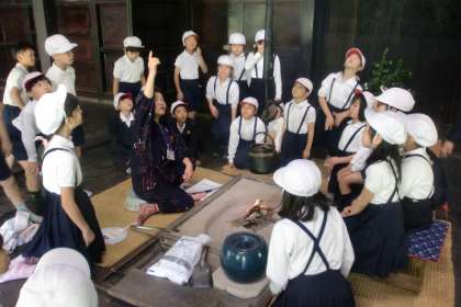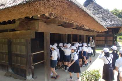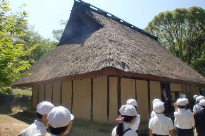 緑地内にある「日本民家集落博物館」で全国の有名な古民家を見学し、昔のくらしに触れました。