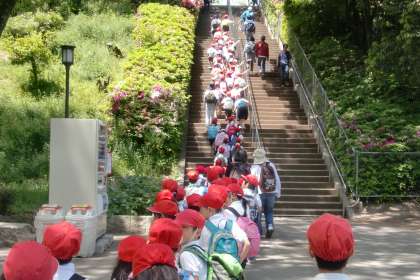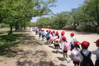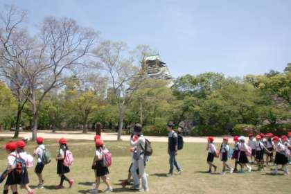 公園内を西の丸庭園まで移動しました。大阪城の堀や櫓、天守閣を見ながら歩きました。