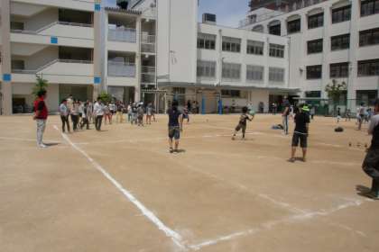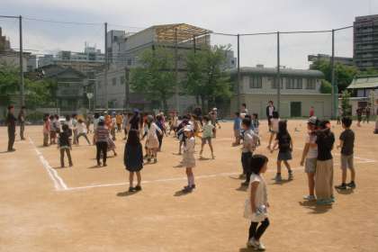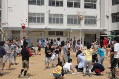 こいのぼりを上げた後、豊仁小学校の運動場で、「玉入れ」「リレー」「ドッジボール」などをみんなで楽しみました。