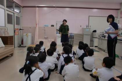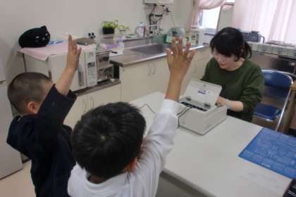 音が聞こえたら手を挙げて知らせます。みんな上手にしていました。