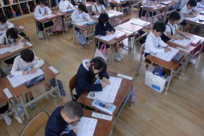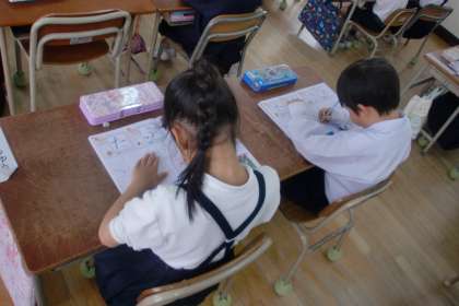 文字の形(どこの部屋に書くか)に注意しながら、丁寧に書いていました。
