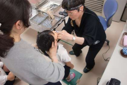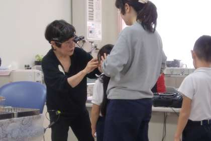 校医の岩坂先生にお越しいただき、耳鼻科検診をしていただきました。