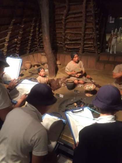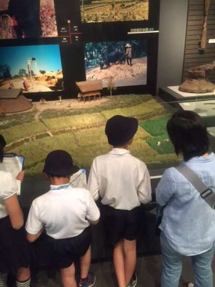 和泉市にある弥生時代の池上・曽根遺跡に来ています。博物館では稲作が始まったころのくらしの様子が展示されていました。