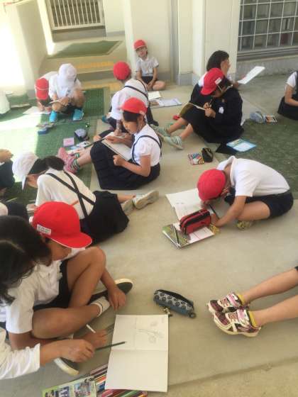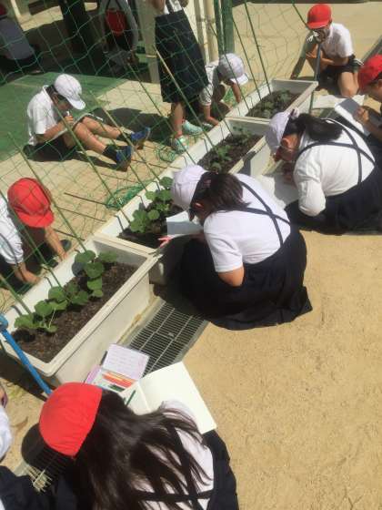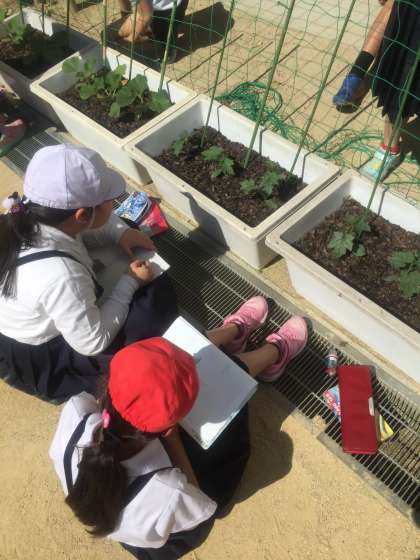 ヘチマとヒョウタンの成長の様子を観察しています。