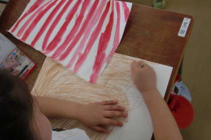 3年2組 図画工作科 「立てたり丸めたりして表そう」