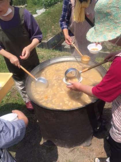 農家のみなさんがお昼ごはんを用意してくださっています。とても美味しそうです。