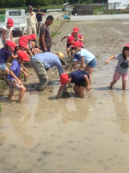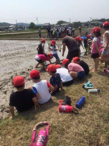 2年生の田植えです。みんな意欲的に田んぼに入って行きました。