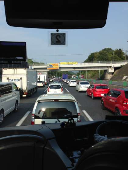 事故渋滞につかまっています。 帰着が遅れそうです。