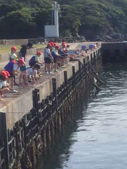 さあ、魚釣り開始。どれだけ釣れるか、ワクワクしながら糸を垂れています。
