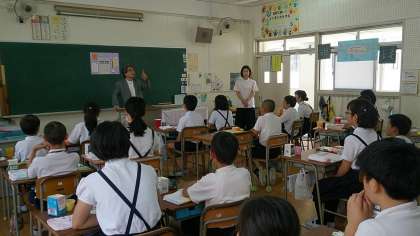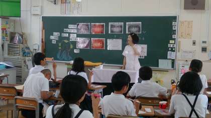 大阪市教育委員会から歯科衛生士の戸木先生と本校学校歯科医の尾辻先生が来られて、歯と口の健康についてご指導いただきました。