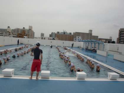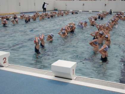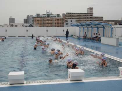 2時間目は、3,4年生のプール開きでした。お天気は曇りでしたが子ども達はうれしそうに水に入っていました。