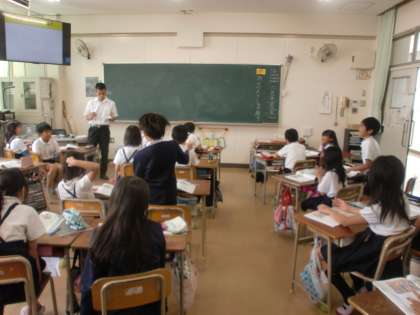 4年1組 道徳 「雨のバス停留所で」