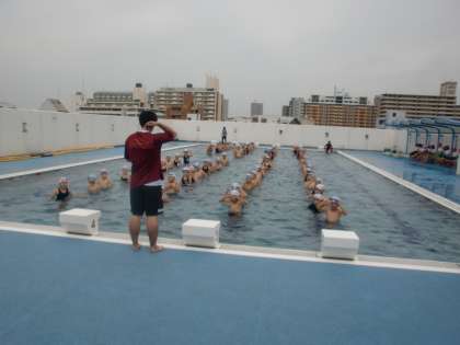 5,6年生のプール開きは5時間目でした。さすがに見ずにはいることへの抵抗はなく、先生の指示に従って規律正しく水慣れをしていました。「