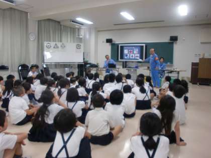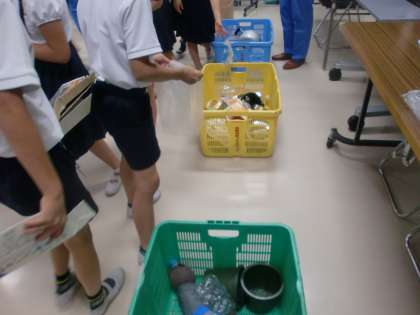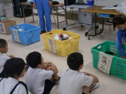 多目的室で、ごみの処理やリサイクル、ごみの分別について教えていただきました。