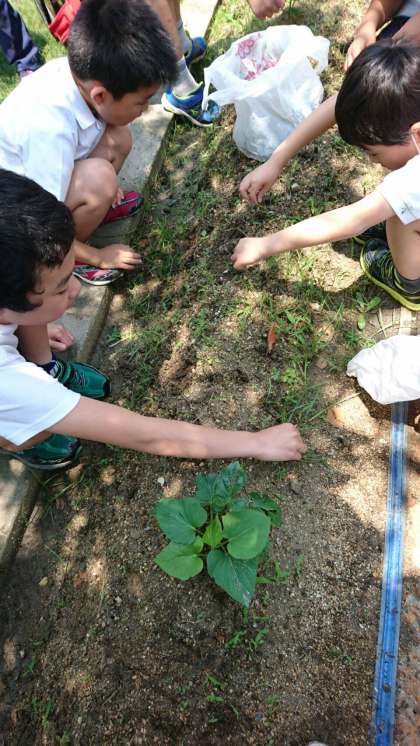 今日はサツマイモ畑の草ぬきをしました。