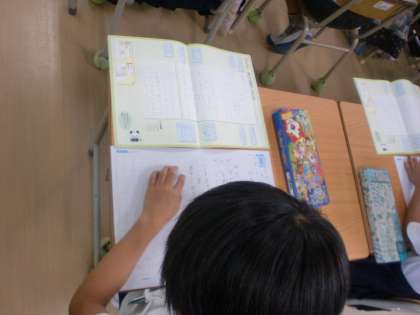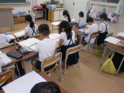 みんなとてもよい姿勢で、一文字一文字丁寧に練習をしていました。日ごろは、こんなにゆっくりと字を書くことはあまりありません。大切にしたい時間です。