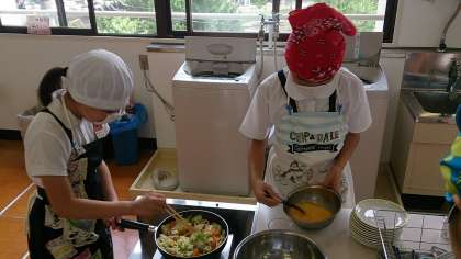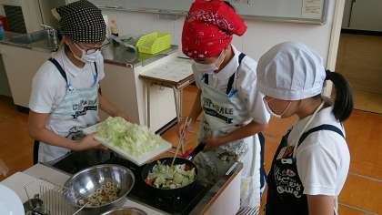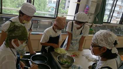 今日は1組の調理実習でした。2組と同じ「炒めてつくろう朝食のおかず」ということで、たまご料理と野菜炒めを作りました。