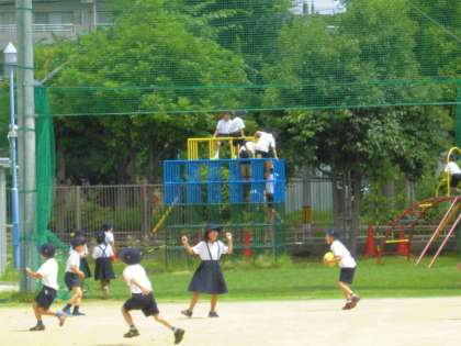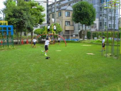 今日の午前中は日が出ていたので、子ども達が外に出て遊んでいました。土曜日に芝生を刈ったところなのでとても気持ちよさそうでした。