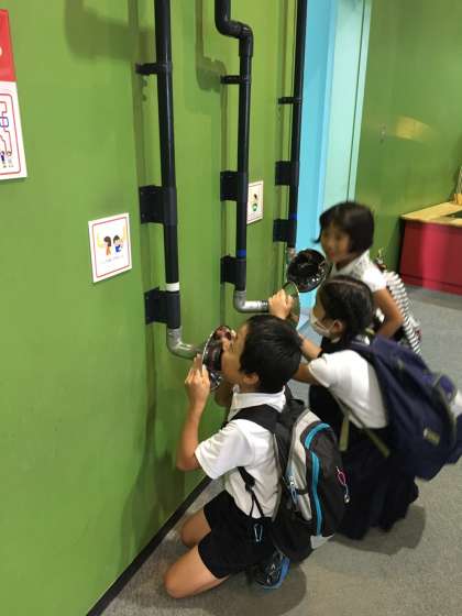4年生が理科の星の学習で大阪市立科学館にプラネタリウムを見に行きました。残念ながら、その写真は撮れませんでしたが、科学館の中で様々な実験や科学に関する遊びをしました。