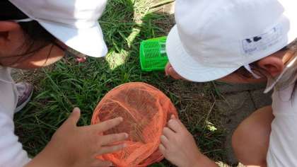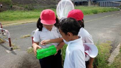 昆虫の体のつくりや、成長の様子、食べ物などと調べる学習です。淀川河川敷まで昆虫を獲りに行きました。