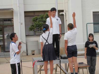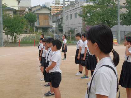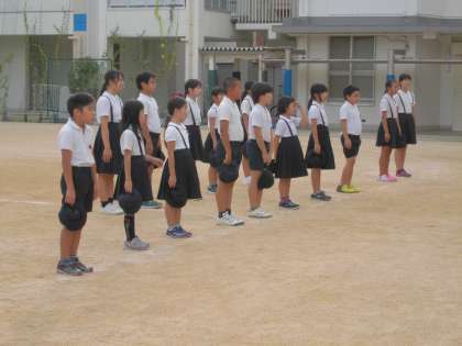 放課後に、代表委員会の児童が入場行進、開会式の練習をしています。全校児童をリードする役目なので責任を感じてやっていました。