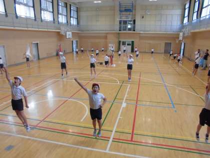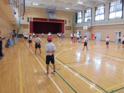 こちらも放課後に、練習していました。豊仁小学校の子どもたちにとって応援団に入ることは憧れで、毎年多くの立候補者の中から応援団の子どもが選ばれます。講堂で大きな声を出して練習していました。