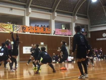台風18号が近づいて来ていましたが、中津の北スポーツセンターで行われました。豊仁小学校は1回線で西天満小学校と対戦しました。