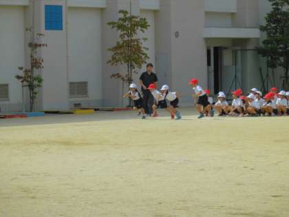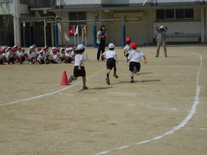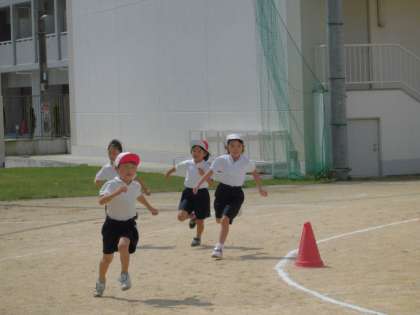 トラックを走りました。距離も長く、カーブもありますが、みんな頑張って走っていました。