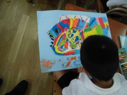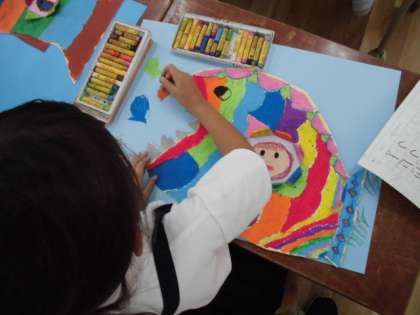 1年2組 図画工作科 「カラフルざかなの おなかの なかで」
