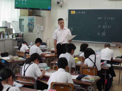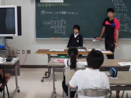 割り算の筆算のしかたを学習しています。習熟度別・少人数指導によって3つのコースに分かれて学習しています。