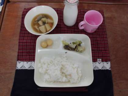 今日はお月見にちなんで、「みたらしだんご」と「さといもの煮もの」が出ました。季節感があって楽しいですね。