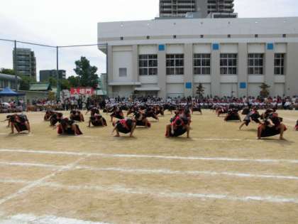 今やうんどうかいの定番「南中ソーラン」ですが、4年生はキレを大事にして練習してきました。当日は、キレッキレッで踊っていました。