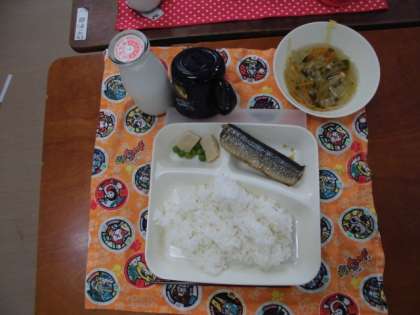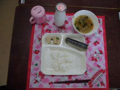 今日の給食には、「さんまのさんしょう焼き」が出ました。この季節にピッタリの献立です。子ども達は喜んで食べていました。