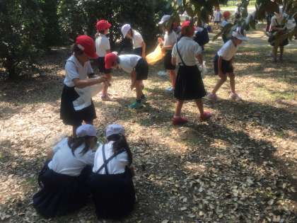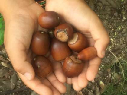 お弁当の後は、ドングリ拾いをしました。いろいろな種類のドングリがありました。
