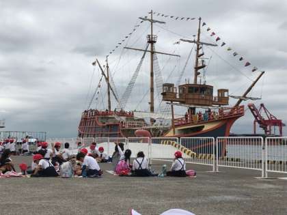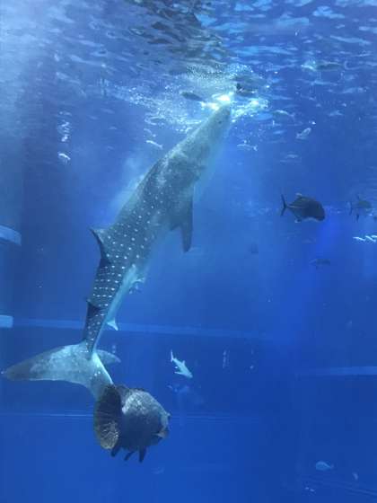 ジンベイザメのエサやりとサンタマリア号(お弁当タイム)です。