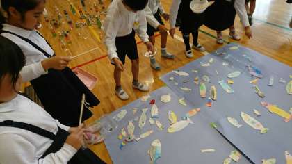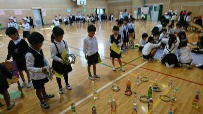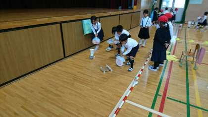 2年生が工夫して作った「おもちゃランド」で1年生はとても楽しく遊ばせてもらいました。来年は2年生になって招待する立場です。