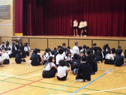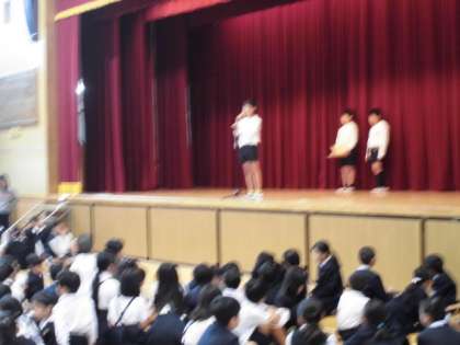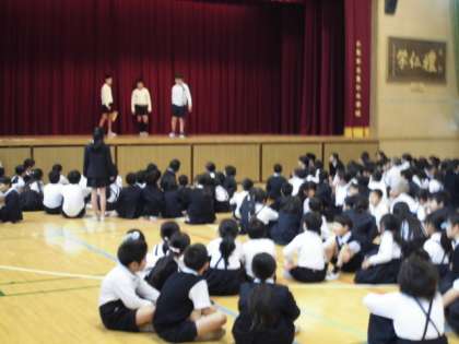 集会委員会の児童が言うアニメの中のセリフや説明を聞いて、題名を当てます。