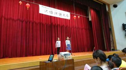 中国語弁論大会に本校の児童が参加しました。2人とも堂々と暗唱していました。