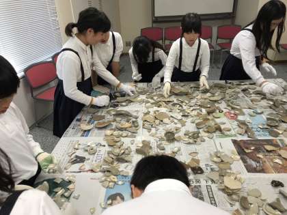 大阪歴史博物館で考古学体験として「瓦の拓本作り」「割れた土器の再生」「難波宮」のARによる復元影像」を体験しました。
