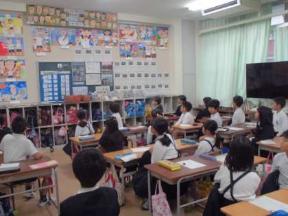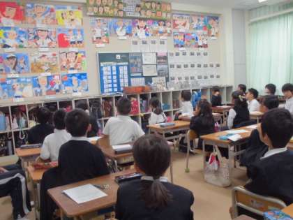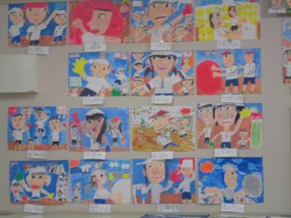 友達の「運動会の絵」を見て、よく描けているところや、面白いところ、ステキなところなどを見つけて発表し合いました。