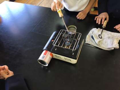 温度の変化によって,金属の体積がどのように変化するか,金属に熱を加える実験を通して調べています。