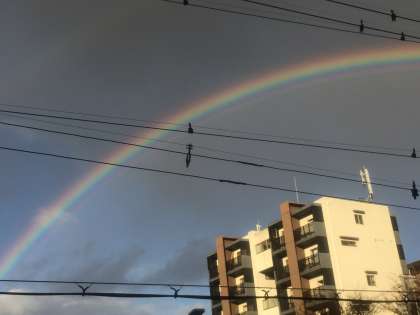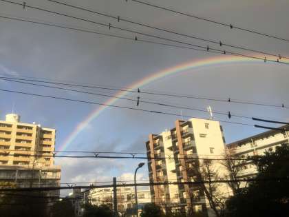 本日4時ごろ、本校の北側にきれいな虹がかかっていました。