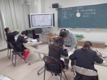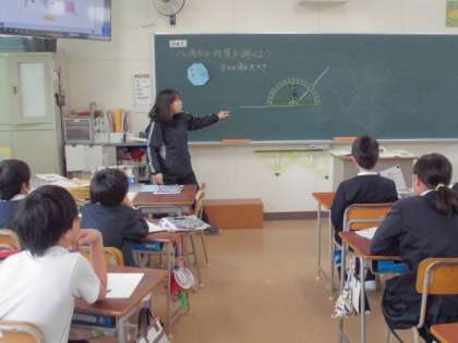 習熟度別・少人数学習で3つに分かれて学んでいます。正多角形を作るのが結構難しそうでした。