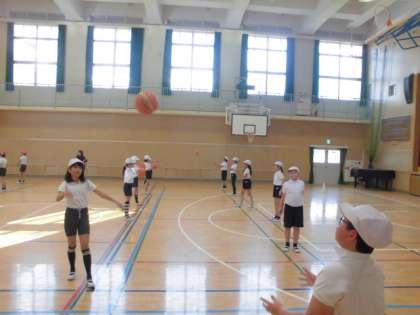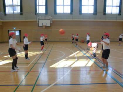 日ごろ使っているボールよりも重いので,投げるのも受けるのも難しいようです。
