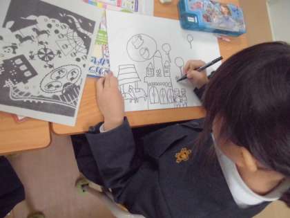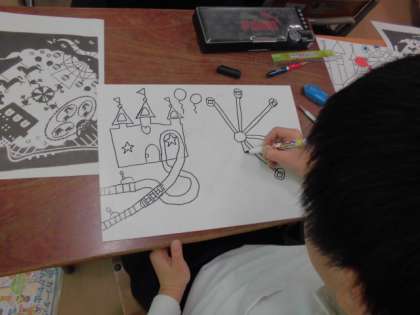 2年3組 図画工作科「紙はんがで ゆめの ゆうえんち」