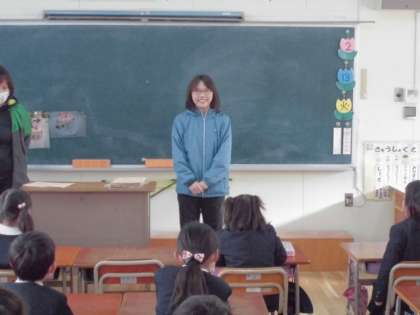 今日から,大阪教育大学の山口智江美さんがインターンシップで来られます。今日は、教室を回って自己紹介をしました。子ども達はとてもうれしそうでした。
