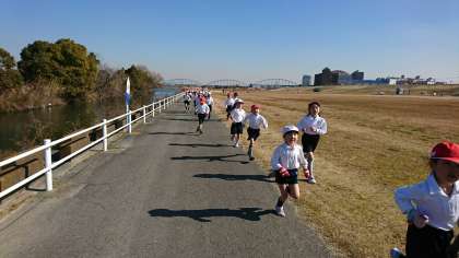 1,2年生が耐寒マラソン大会の会場である「淀川河川敷」に行って走りました。お天気がよくて,とてもさわやかでした。