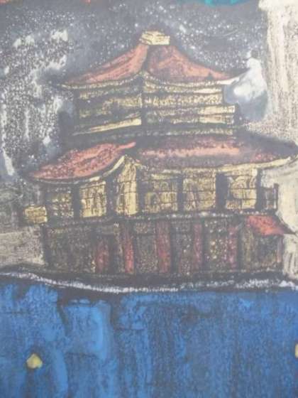 彫刻刀で彫った版木に,絵の具をのせて刷りました。とても素敵な作品に仕上がりました。