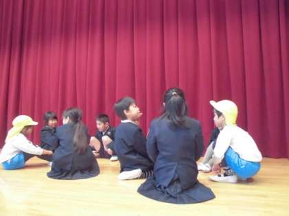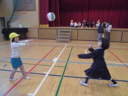 長柄保育園の園児が小学校入学に向けて,本校の見学に来ました。日本に昔から伝わる遊びを一緒に楽しみました。