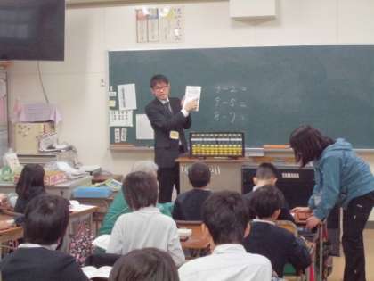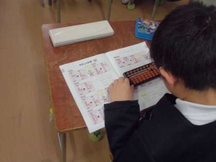 今日は,そろばんの先生(丸田先生)に来ていただいて,そろばんの学習をしました。少しの時間なので,そろばんとはどんなものかの体験をしました。